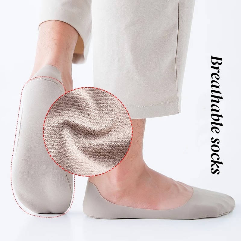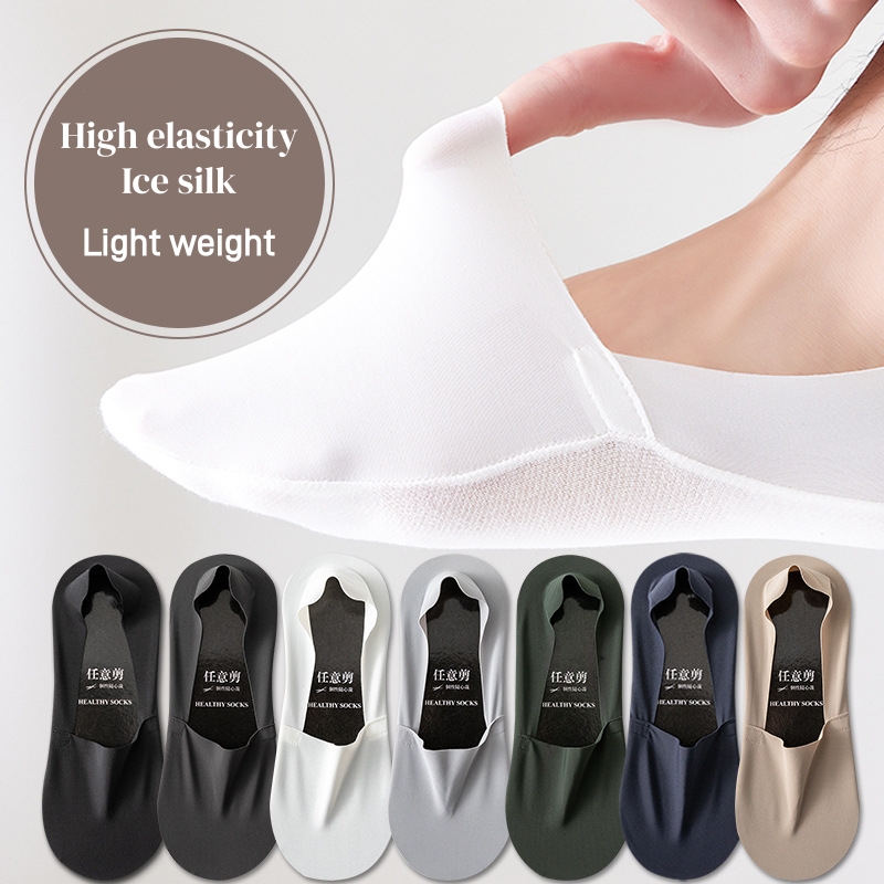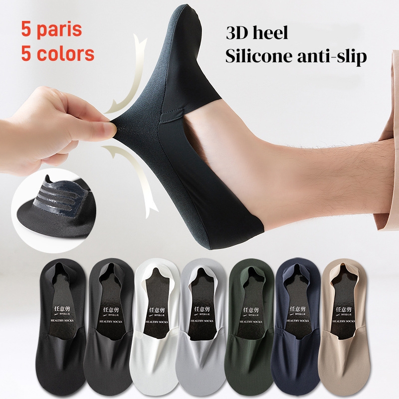 5 Pairs Men's Anti-Slip Ice Silk Deodorant Shallow Socks