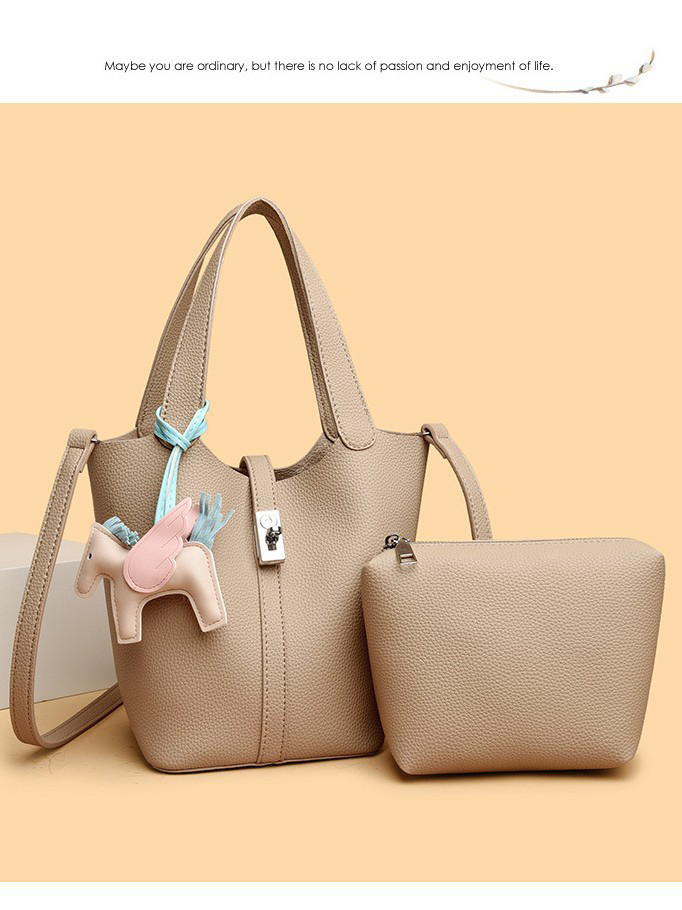 Women's solid color bucket bag